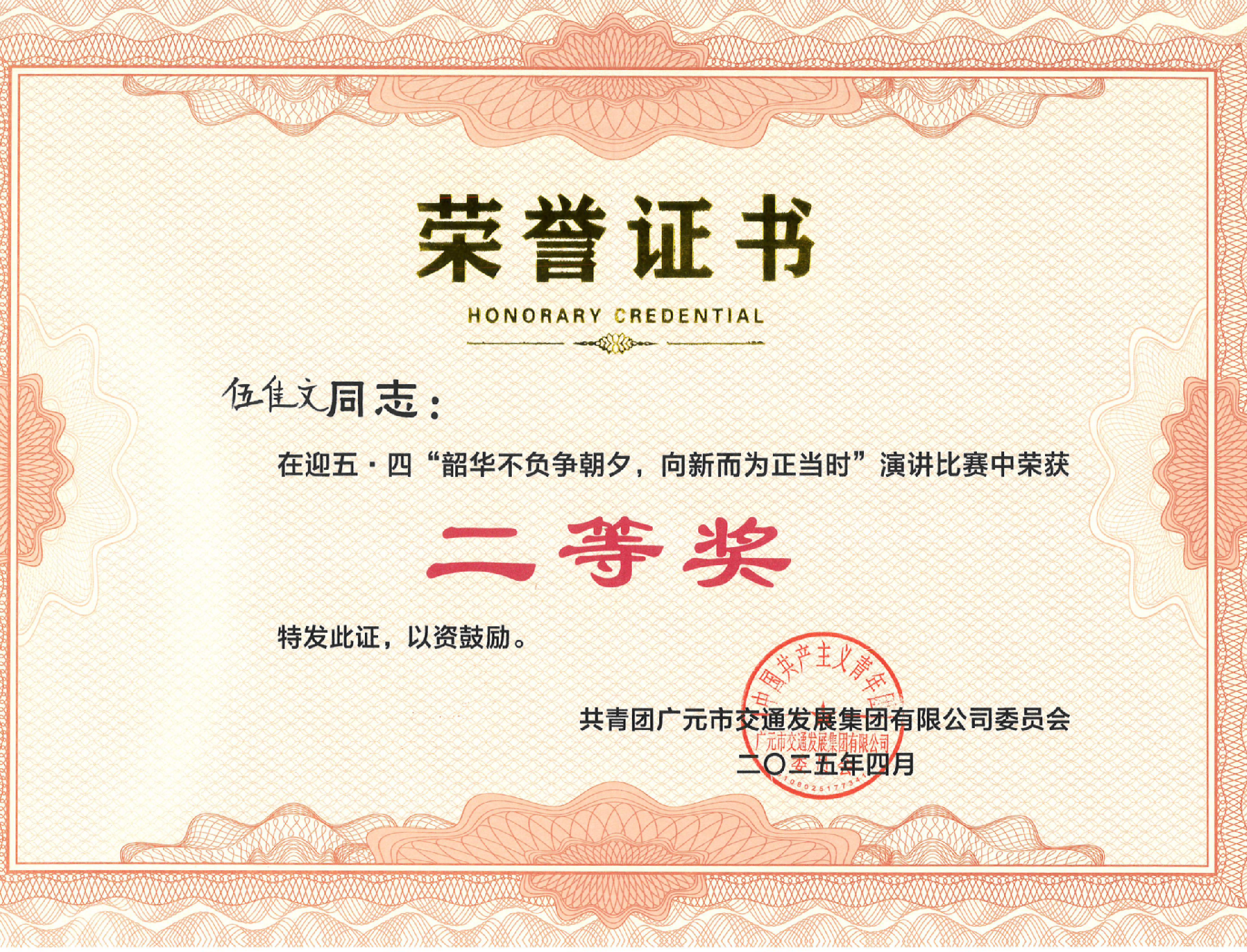 聚燃青春之火,共赴奮進(jìn)新程|伍佳文同志榮獲市交發(fā)集團(tuán)演講比賽二等獎(jiǎng)
