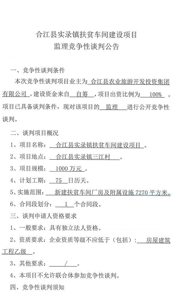 合江縣實錄鎮(zhèn)扶貧車間建設(shè)項目監(jiān)理競爭性談判公告.docx