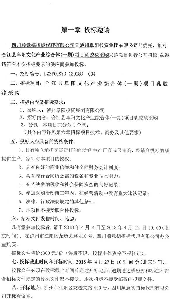 投標(biāo)邀請:合江縣阜陽文化產(chǎn)業(yè)綜合體(一期)項目乳膠漆采購